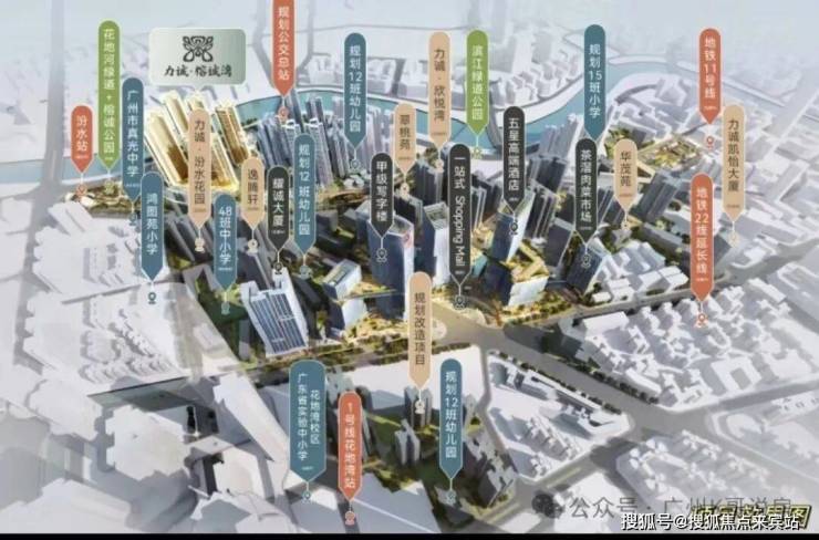 力诚榕诚湾属于茶滘旧改项目,位于荔湾花地河以西,广州香料厂以南地段,北侧有一座高架桥,东邻汾水花园和真光中学,西侧为芳村的花地河。