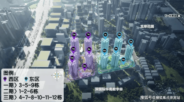 02-20-07地块(西区)占地2.2万㎡,建面约15.6万㎡,计容积率建面约11.3万㎡,容积率5.16,包含10.2㎡万住宅、1500㎡商业、5700㎡幼儿园学校及其它基础配套设施若干;7栋、12栋总高47F,3T6户;8栋总高32F,2T5户;10栋、11栋总高32F,2T6户;9栋是幼儿园
