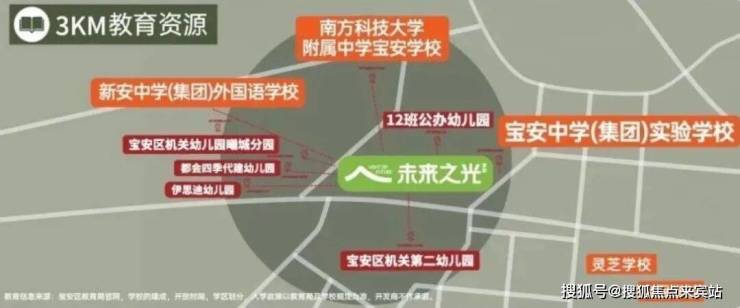 项目内自建幼儿园,3km内南方科技大学附属中学宝安学校(在建中)、宝安中学(集团)实验学校、新安中学(集团)外国语学校、曦城协同学校等学府汇聚