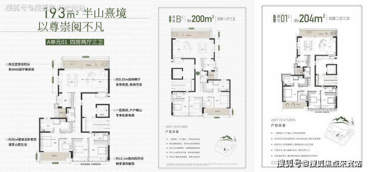 全景视野:南北四阳台设计,270°景观引入室内,主卧带45㎡套间及瞰景阳台。