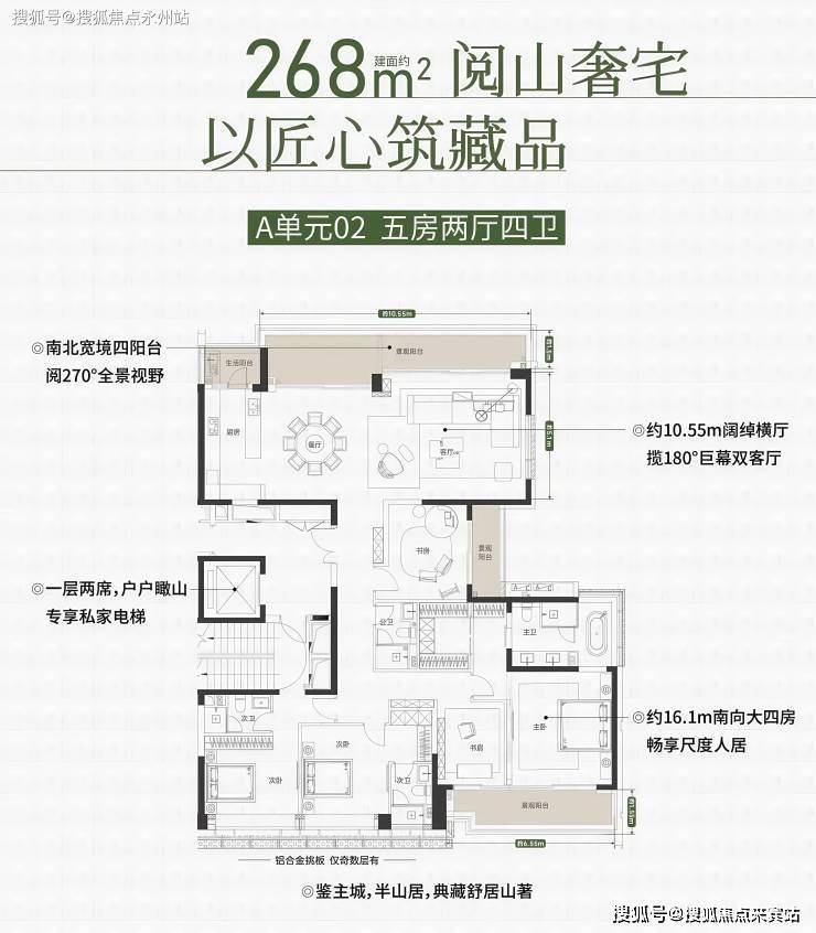 南北通透:四开间朝南,IMAX级环幕景观阳台(约9.55米宽厅),主卧套房设计,层高3.6米。