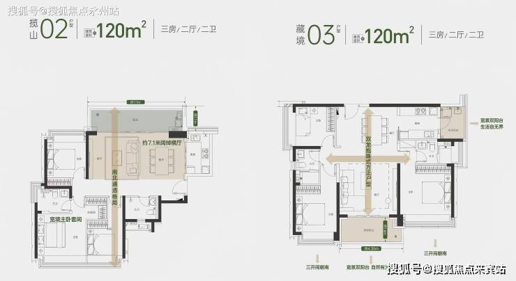 双龙抱珠设计:正南朝向,三开间朝南,主卧带观景浴室,生活阳台连接厨房,兼顾山景与城市景观。