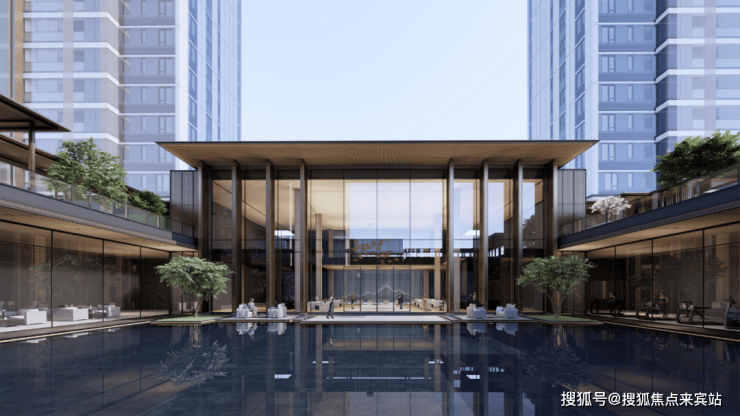 在大师团队的妙笔下,整个项目规划建设7栋塔楼、8栋板楼、15栋叠墅,高层围绕南面的黑白面将军山和南屏水库形成为围合之势,将面宽1000m的湖景和5000m的山景资源最大化,实现建筑与外部环境的融合协调。
