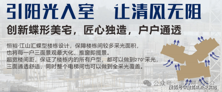 蝶形楼体,270°三面采光通风;全明通透户型,功能分区合理,品质生活从容有度。
