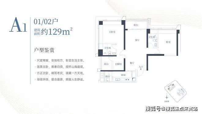1栋一单元A1、A2户型:面积约为129㎡