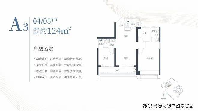 1栋一单元A3户型:面积约为124㎡