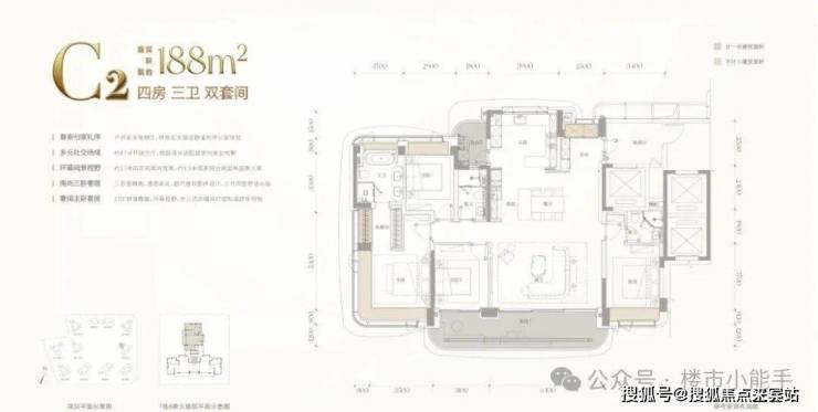 这一档带来的变化,主要是在居住体验上——从基础四房,升级到双套房结构,空间的私密性和使用舒适度,会有一个明显提升。