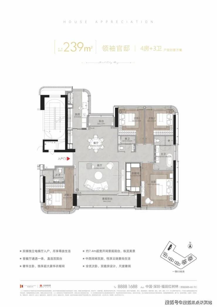 建面约239㎡领袖官邸4房+3卫(T12-01/02)