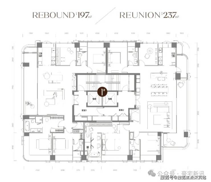 •尺度革新:建面约197m²户型,专梯入户设计。户型格局极致方正,动静分区清晰,实现了三面采光与双南向套房的“双龙抱珠”格局。