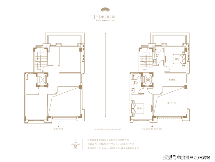 建面约240㎡的上叠户型,可独立入户,首层是独立会客厅与长辈房,二层则是三间卧室。