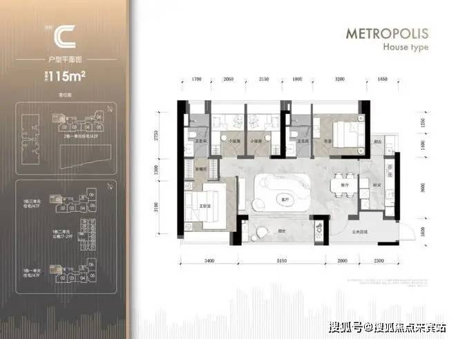 一期共3栋,包括1栋一单元47F商品房,1栋二单元29F公寓和1栋三单元回迁房;二期为2栋1单元商品房,二单元保障房和1栋幼儿园。梯户比4T6,车位1:1。