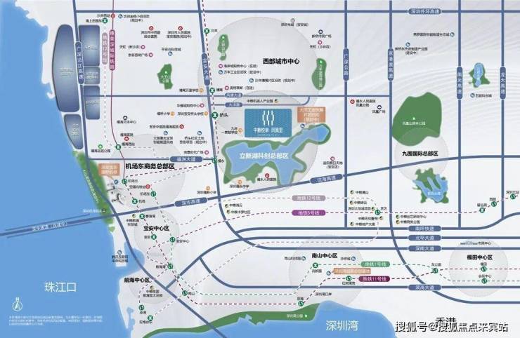 项目所处的立新湖片区,正处于前所未有的历史发展机遇期。作为前海一级辐射区、会展海洋城与空港新城三重国家级战略叠加的核心区域,这里正迎来"黄金内湾"崛起的时代契机。根据宝安"一带两心四片"的发展布局,福海既是"临空经济总部带"的黄金节点,又是西部城市中心的重要组成部分。