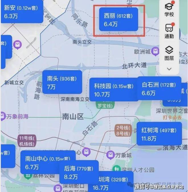 相比前海、科技园动辄10万+,西丽均价才6.5万,堪称南山最低门槛