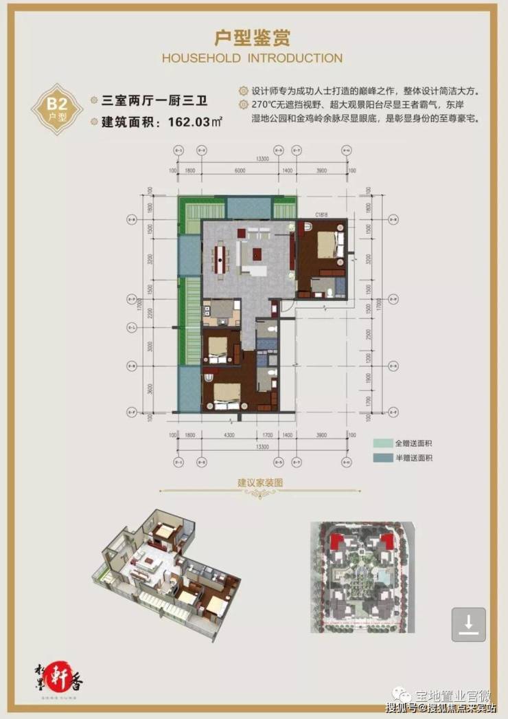 2.270°无遮挡视野,超大观景阳台尽显王者霸气,东岸湿地公园和金鸡岭余脉尽收眼底,是彰显身份的至尊豪宅。