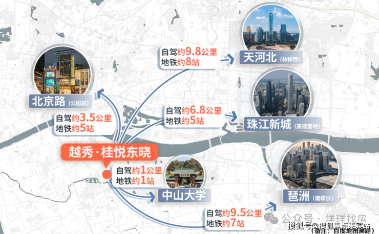 ✔五大主干道串联主城,咫尺越秀、瞬达天河,距离约8km内(约20分钟)通达珠城琶洲