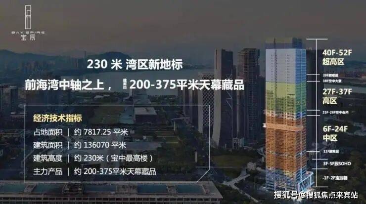 ✅ 地标高度:230米宝中天际线至高点,52层超高层建筑,4-4.1米奢阔层高