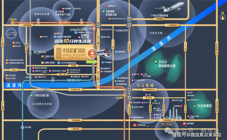 中铁诺德阅泷位于广州白云新江高核心商业区,白云新城北、广花路黄金主轴、广州培文旁,拥有白云北所有优质核心资源,集商业、教育、交通、政务、医疗和产业于一体。项目对面是国家级广州千亿民科园,上班一步即达,园区内有1800家企业,提供数万就业机会。
