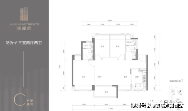 项目主打建面约89-110㎡三至四房。