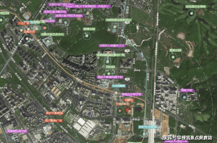文体:项目1.5公里范围内分布有光明高新园区城市广场、民心园、新城公园、麒麟山公园、虹桥公园、奶头山体育公园、光明群众体育中心。另外,光明市民广场和光明文体艺术中心距离项目也不是很远,一站地铁可达。