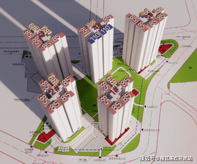 整体规划5栋30-32层高层住宅,采用围合式布局