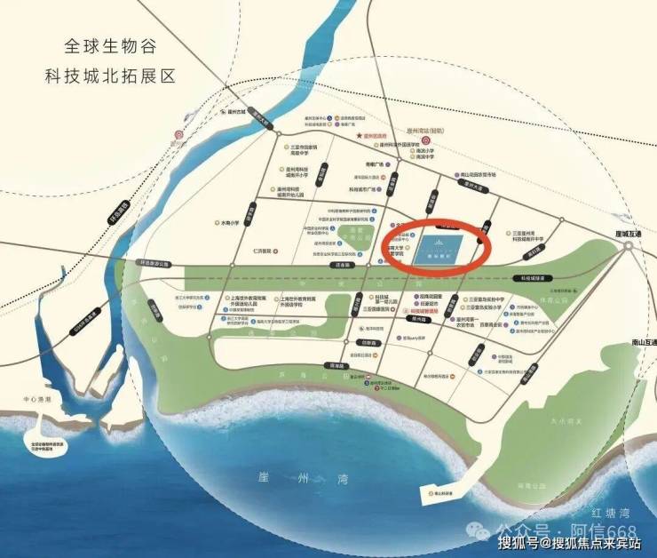 项目位于三亚崖州科技城,南繁组团,周边配套齐全,医疗,教育,商业配套都有,这个位置也是属于科技城核心区,距离崖州湾海边2.5公里左右。