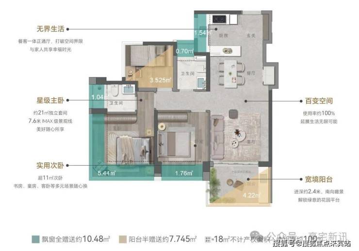 ②约16㎡南向瞰景阳台,约7.2m阔绰面宽,超越同级标准