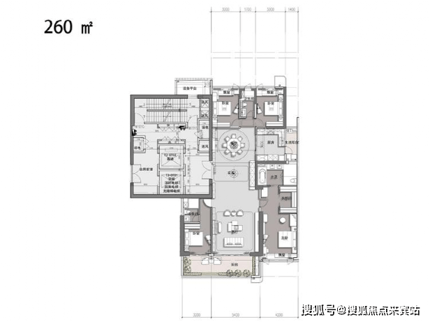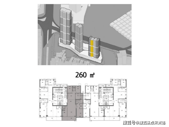 260㎡的四房位于3号楼的中间位置,3号楼采用四梯(含货梯)四户,每两户共用两梯。建面约260㎡的户型亮点:独梯入户对景玄关、经典竖厅户型、少过道、高使用率、超尺度景观阳台等,经济改善型首选。
