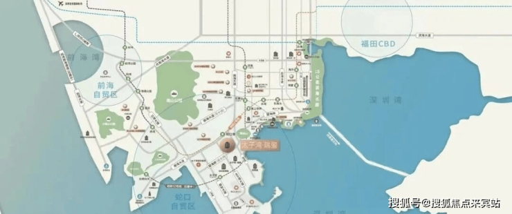 海:蛇口邮轮中心陆:南海大道、港湾大道、望海路(规划中)空:深圳宝安国际机场、香港国际机场、澳门国际机场、珠海金湾机场轨:2号线蛇口港站、12号线太子湾站口岸:深圳湾口岸建面约46万㎡滨海商业街区(在建中),汇聚K11亚洲首个旗舰项目K11 ECOAST(在建中)等国际文化艺术商业及建面约8万㎡五星级酒店(在建中),打造“海平线上的香榭丽舍大街”。