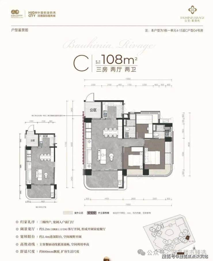 最新信息:项目位于南山前海听海大道与妈湾二路交汇处,距离地铁5号线妈湾站仅约300米。据悉,本次将推出410套可售住宅,主推建面约108-148㎡的三至四房,预计4月开盘入市。