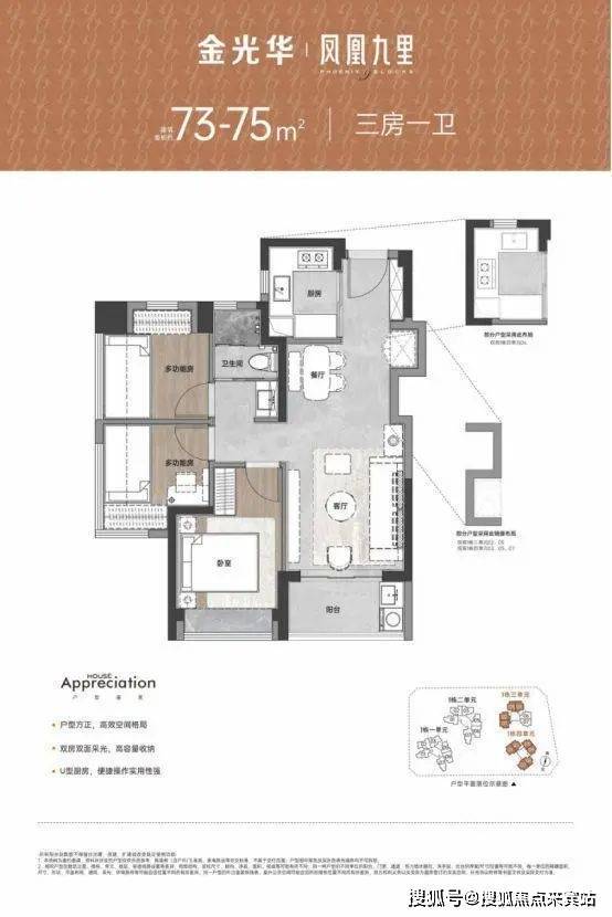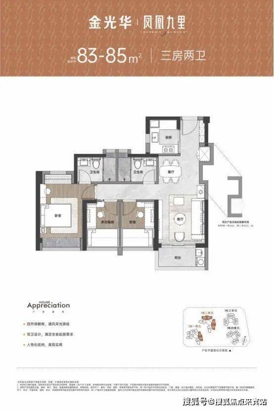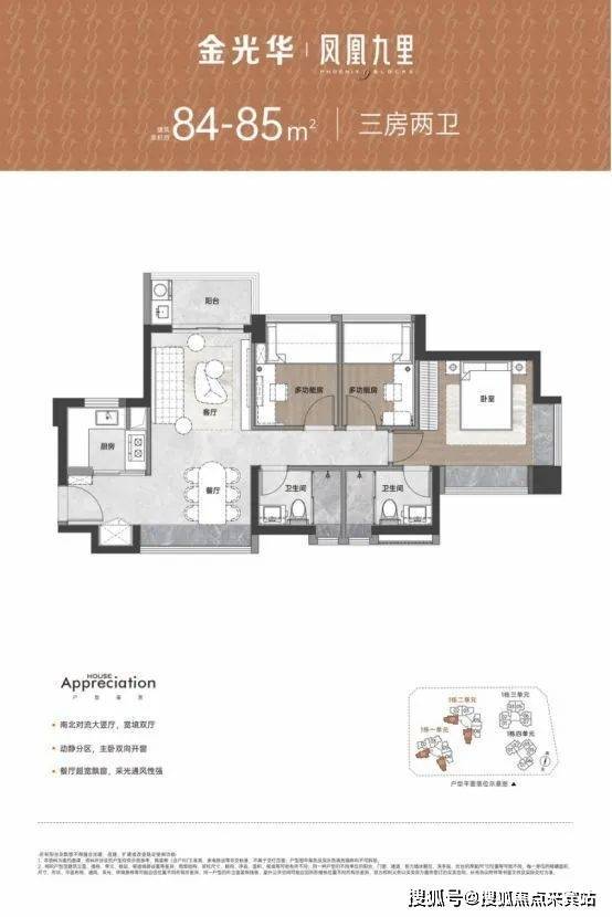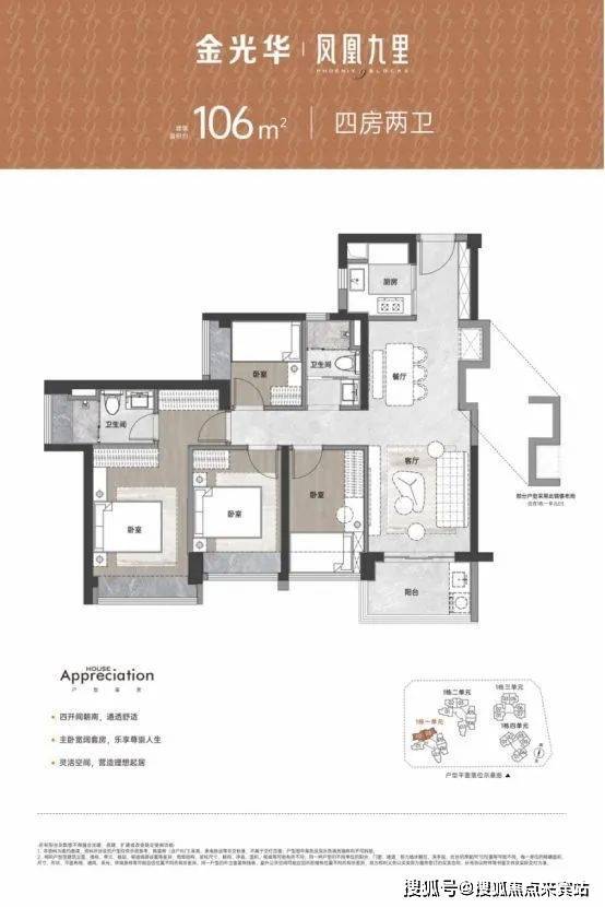 建面约67-106㎡二至四房舒居美宅,承袭金光华精工匠造标准,以通风采光俱佳、多开间朝南向、全屋多飘窗,多维收纳系统等特点,为业主提供高规格高品质的人居生活。金光华凤凰九里