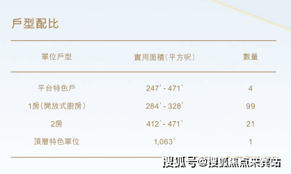 🔺标准单位实用面积284–471平方呎,适配单身贵族、小情侣,贴合网红青年自住及投资需求;特色单位实用面积247–1063平方呎,视野绝佳,可打造网红观景居所;