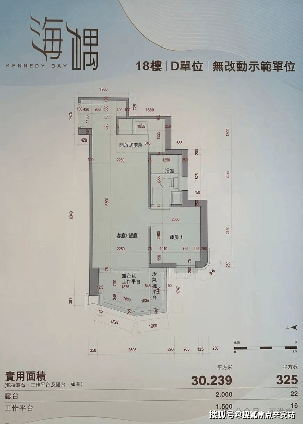 本次开放的示范单位以18楼D室为蓝本,实用325平方呎,一房一厅格局,直观展现空间尺度与生活质感。