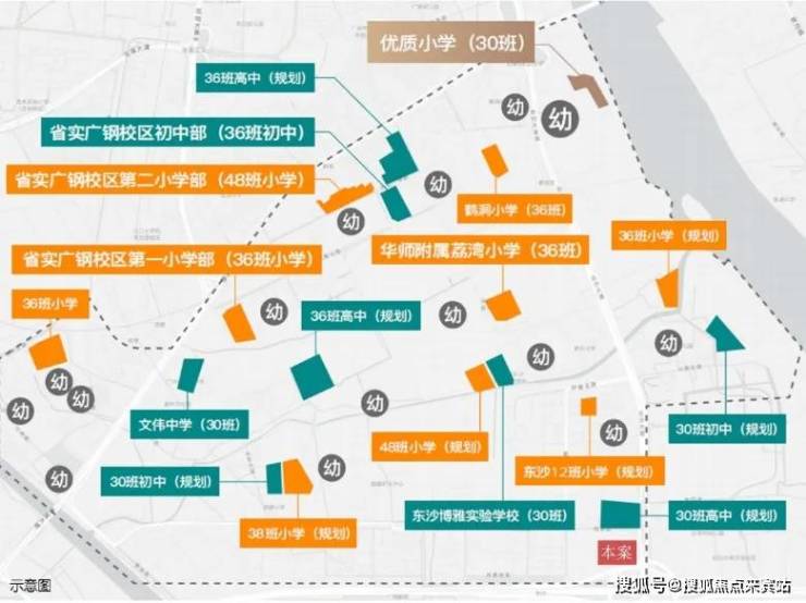 两所九年一贯制在旁,优质中学环伺约1公里规划有两所九年一贯制学校,并且广州市第四中学、广州市西关外国语学校、广东实验中学、广东广雅中学初中部、广州市荔湾区金道中学(真光中学托管)五大学府林立。