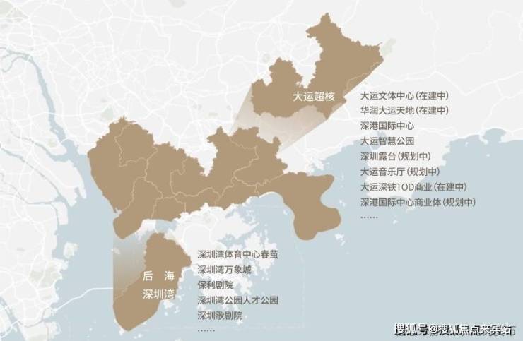 近享华润·大运天地约5万方纯商业空间 (已开业) 、深港国际中心的商业约36万方(规划中)、大运枢纽上盖-深铁x华润万象生活联手带来的TOD商业(在建中) 。