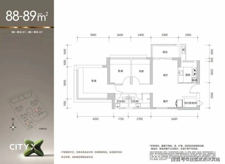 🏆 王炸户型 约89㎡3+1房2厅2卫🏆