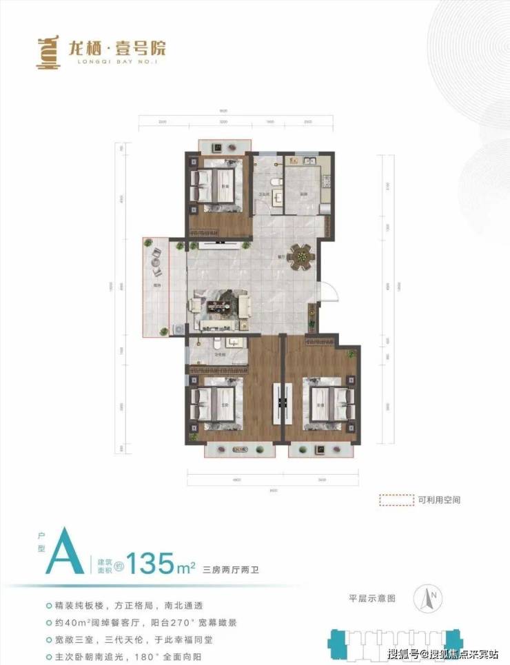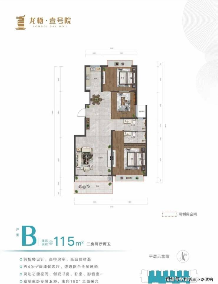 在售户型:115㎡、135㎡,三房两厅两卫