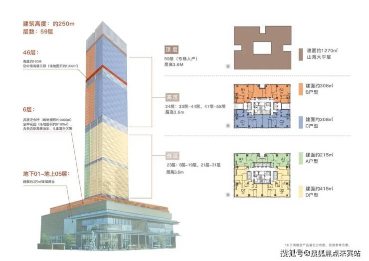 ◎建筑总层数:地下01-地上05层为商业、地上08-59层为品质公寓