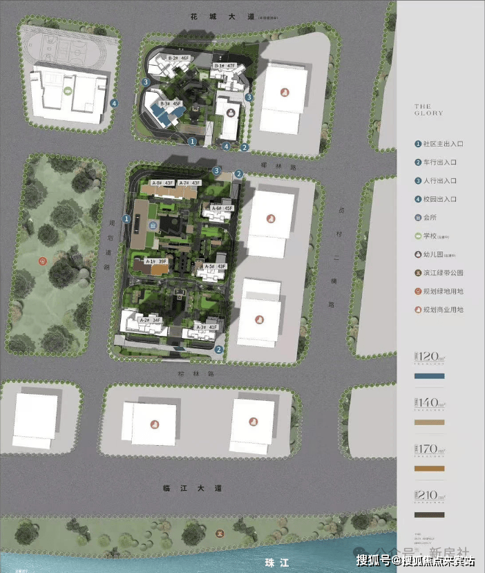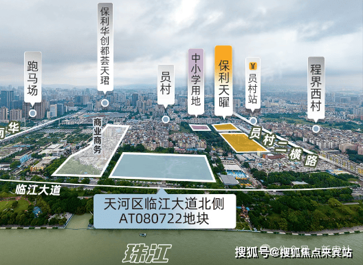 地块位于规划花城大道南侧,紧邻华南快速干线、黄埔大道中、临江大道及科韵路等主要交通干道,这也是天河比较难得的靠近地铁站的盘,地块东北侧距离地铁5号线与11号线交汇的员村站仅150m,5号线+11号线可以连通广州最核心的几个商务圈---珠城、琶洲、天河北、白鹅潭等等,通达性很强。