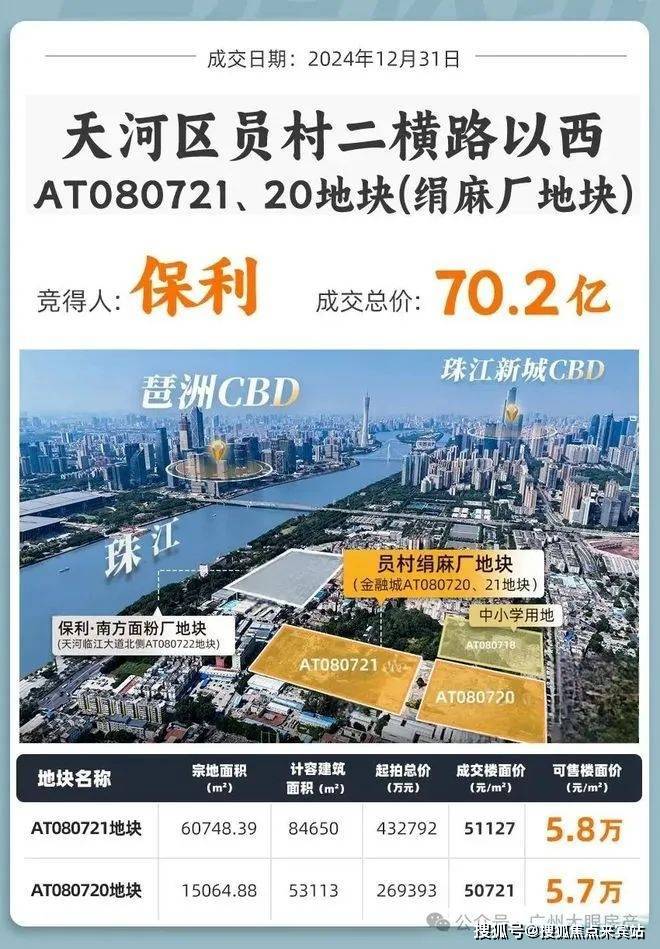 2024年12月31日,天河员村绢麻厂地块被保利拿下,折合成交楼面价5.1万/㎡!