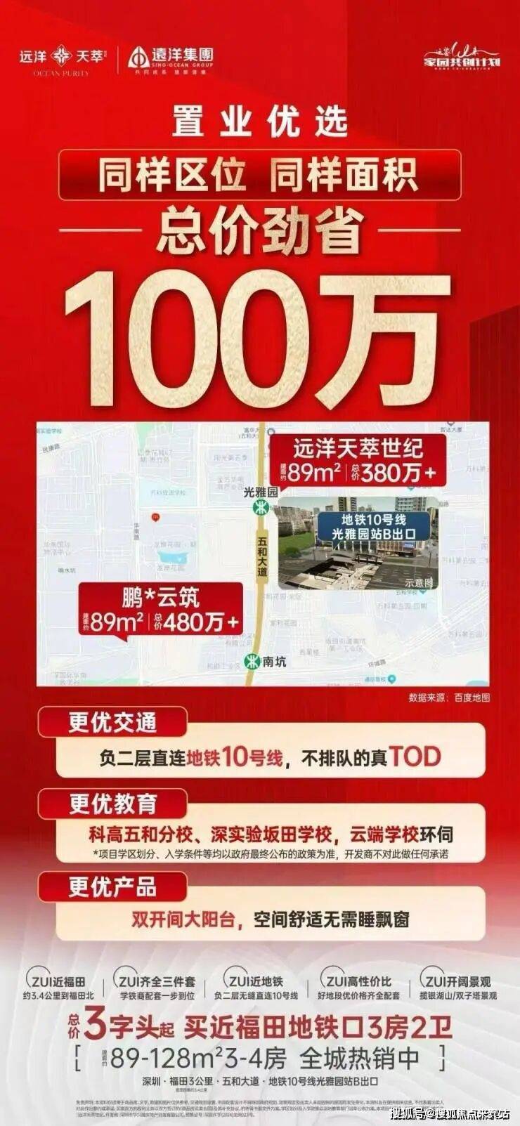 好消息:远洋·天萃推出工抵房,低于正常价10%,单价4.1万、总价369万起,买89-138平精装3-4房,2026年12月精装交楼,地铁10号线光雅园站无缝接驳。