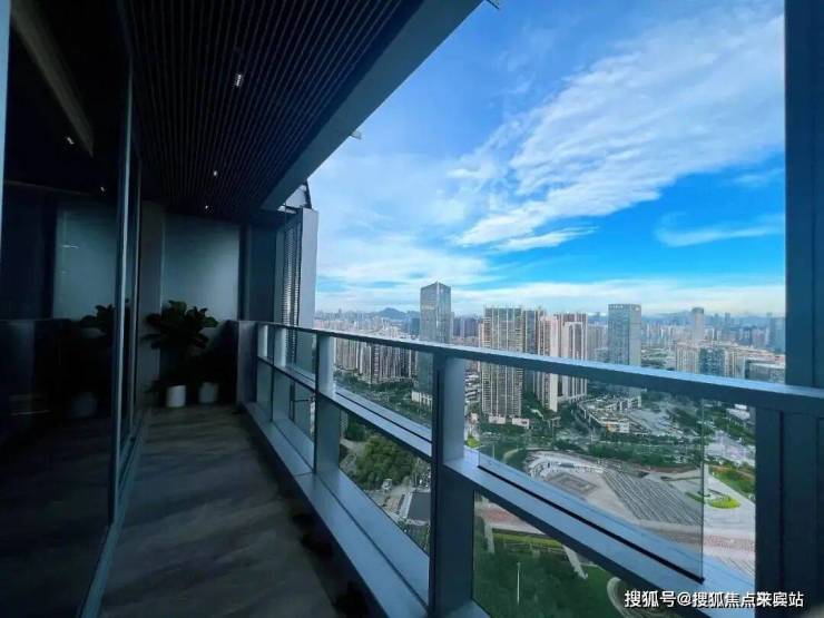 宽幅幕墙,约2米宽的超白玻璃幕墙,安全尺度好,大尺寸的幕墙能带来更好观景体验,配合270°环幕般全景效果,将前海湾尽收眼底。