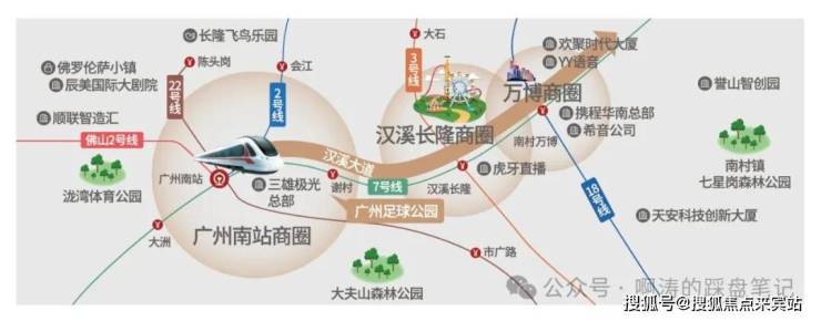 汉溪大道(正在建设中)将广州南站、长隆、万博等核心板块串联起来,聚焦万亿级产业集群,汇集了电商龙头希音、YY 语音、虎牙直播、小鹏汽车、三雄极光等 1700 多家高新企业。