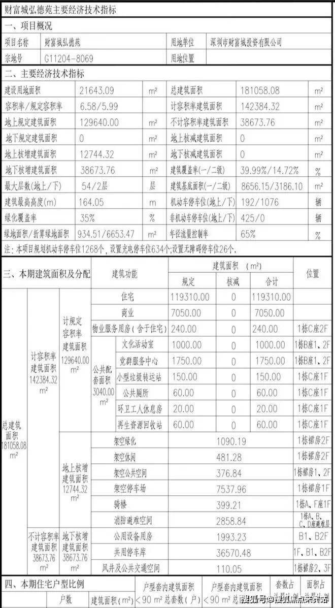 财富城弘德苑:占地面积约2.16万㎡,总建筑面积约18万㎡,计容建筑面积约14.2万㎡,容积率6.58,绿化率35%,共由1栋6座住宅组成,其中1栋A座住宅52F,1栋B/C/D座住宅54F,1栋E/F座住宅32F