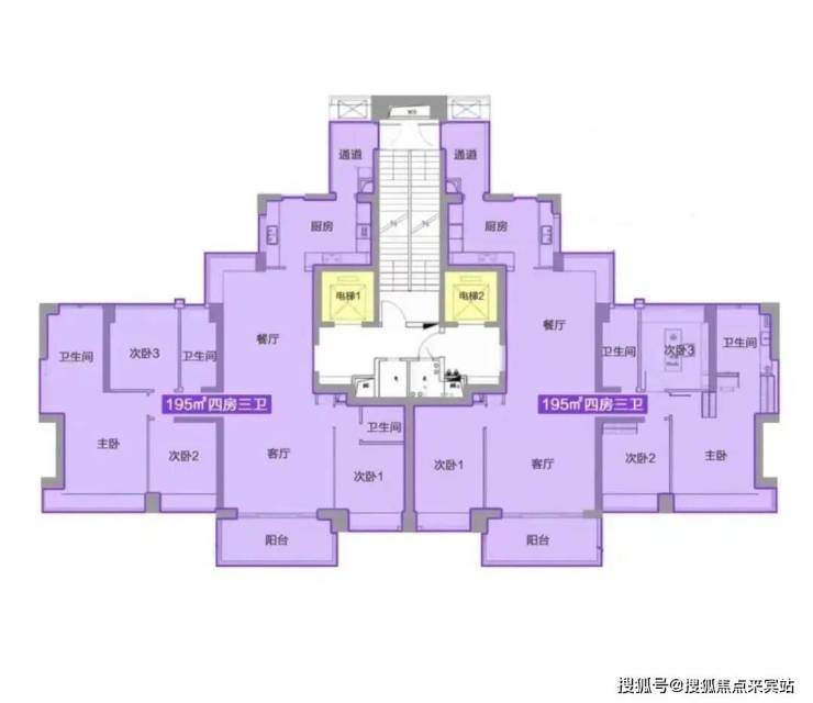1栋及2栋户型完全一样,两梯两户,195平南北通透4房,北望塘朗山景,层高3米6,总高38层,架空1层。