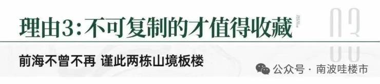 TOP级人气红盘跃级矩献:问世以来,项目屡获深圳\南山区销售面积&金额双冠王,“前海低密山居”热度一路飙升,此刻以迭新之姿,带来前海罕见纯板楼,问鼎前海山居改善范本。