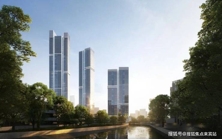 楼栋外立面大量运用玻璃幕墙设计,模拟中国传统植物竹的结构形态,构成鳞次栉比的现代都会感建筑。