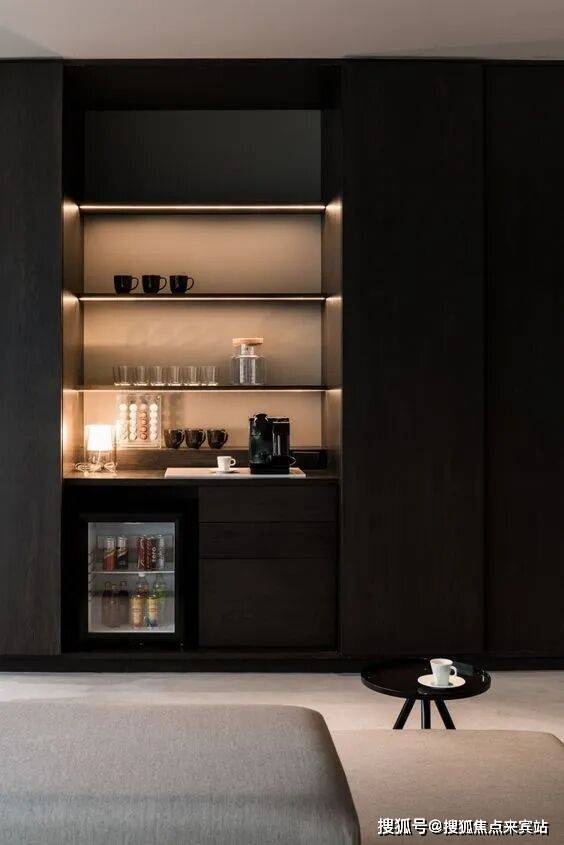 在主卧内,竟然还预留了星级酒店才有的mini bar,临睡前可以小酌一杯,自制喜欢的鸡尾酒。