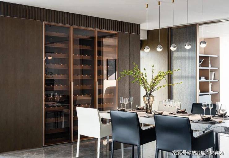 霸气的餐厅空间,甚至能摆下长度约6米的超长餐桌,餐茶一体,满足各种宴请、亲友聚会场景。
