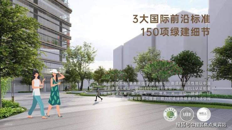 匠心打造示范级园林。引入全球绿色、健康建筑评价体系,致力成为LEED铂金+WELL铂金+国标三星运营认证的标杆项目,打造健康社区、环保生态、节约资源等全方位绿色建筑体验,构建健康生活方式。