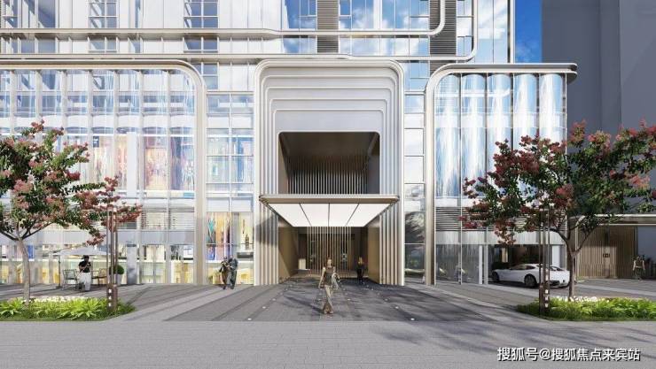 约150米垂直业态综合体,通高弧型双银超白玻璃立面,如水晶之塔。涵盖摩登商业、休闲会所、空中泳池、臻质美宅、星级酒店&高端服务式公寓。